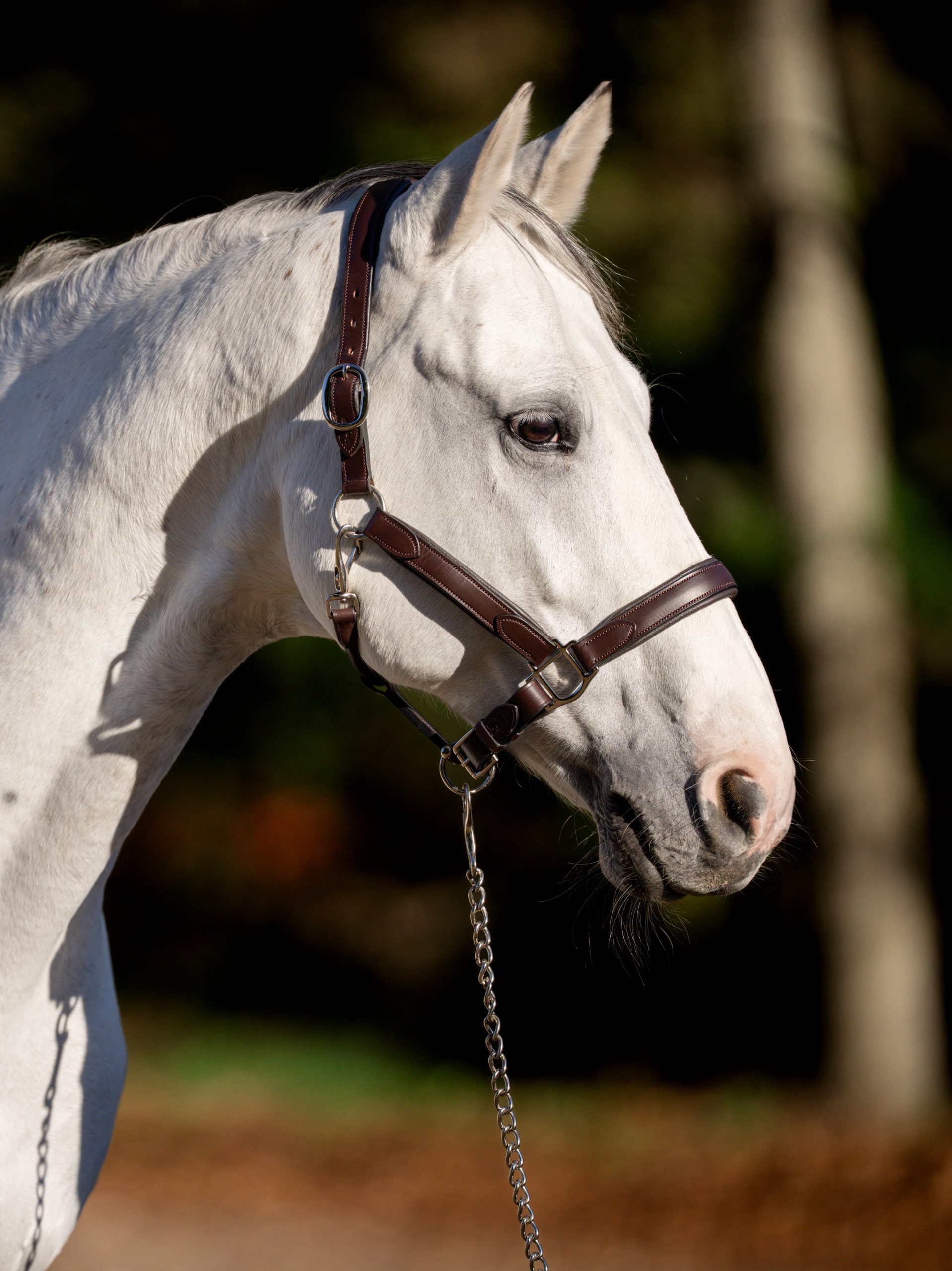 The Nina halter is a modern classic with it’s square raised design and extra wide padding on the nose and crown for exceptional comfort. Black with Black stitching, brushed nickel hardware and a fixed noseband.